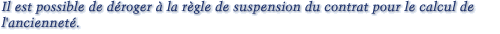 Mais la Cour d'appel de Paris vient de juger qu'il est possible d'aménager les conditions de la suspension du contrat de travail et de prévoir , notamment, que la durée du mandat sera prise en compte pour le calcul de l'ancienneté.